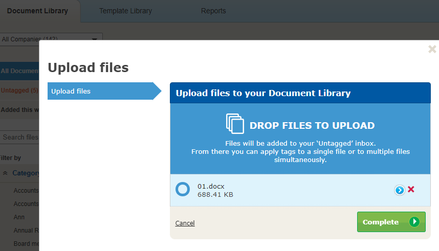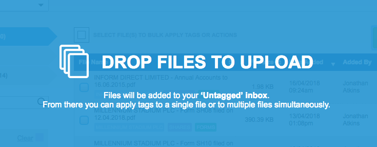 This method is the simplest if you have multiple documents to upload. There is also the option to upload using the Add File button but this is suitable for one at a time only.