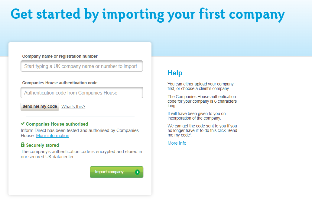 Note: If your firm is a limited company/LLP then you can choose later in the process whether you wish to import your firm or a different company to start the account . In either case you will need the Companies House authentication code.