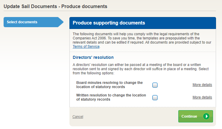4) Finally, you have the option to generate any supporting documentation that you require. You will need to ensure you tick in the boxes alongside the document (if any) that you wish to produce.
