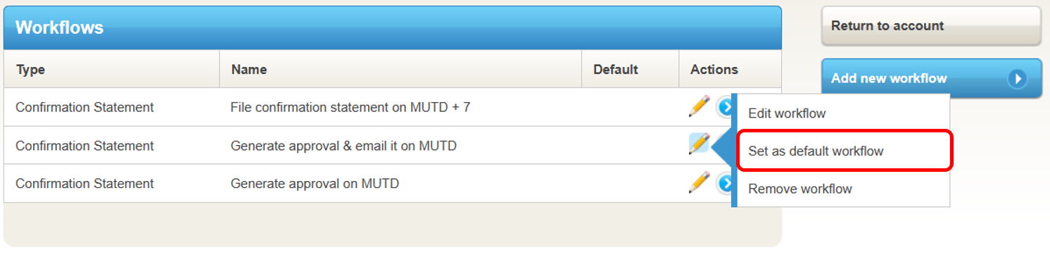 For details of how to create workflows see How to set up Automated Confirmation Statement Workflows