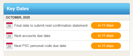 2. On the Company’s dashboard, the ‘Next’ PSCs due by date will be shown.